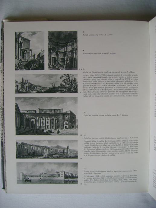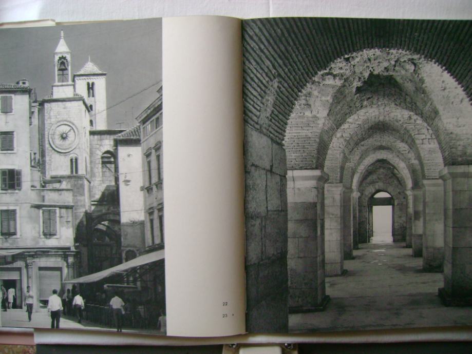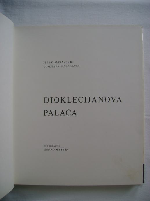 Jerko Marasović / Tomislav Marasović - Dioklecijanova palača - fotografije Nenad Gattin, izdavač Zora, Zagreb 1968. godine, 25 x 30 cm, tvrdi platneni uvez, papirnati omot i plastični vanjski ovitak, 27 stranica teksta + 99 stranica fotografija + 12 stranica priloga.