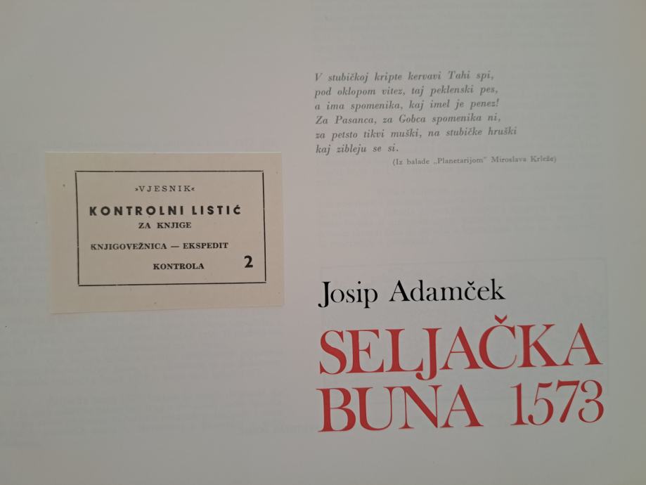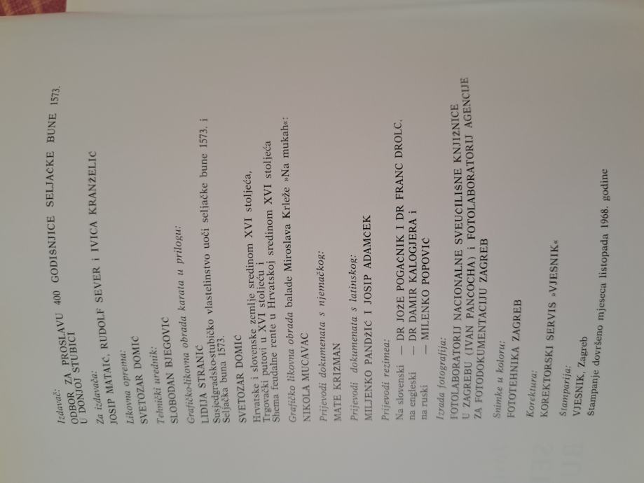 Izdavač: Odbor za proslavu 400 godina Seljačke bune 1573. u Donjoj Stubici, Vijesnik Zagreb, 1968, tvrdi uvez s ovitkom, 201 strana