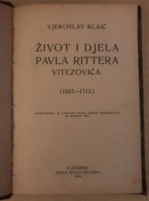 Klaić,Vjekoslav : Život i djela Pavla Rittera Vitezovića