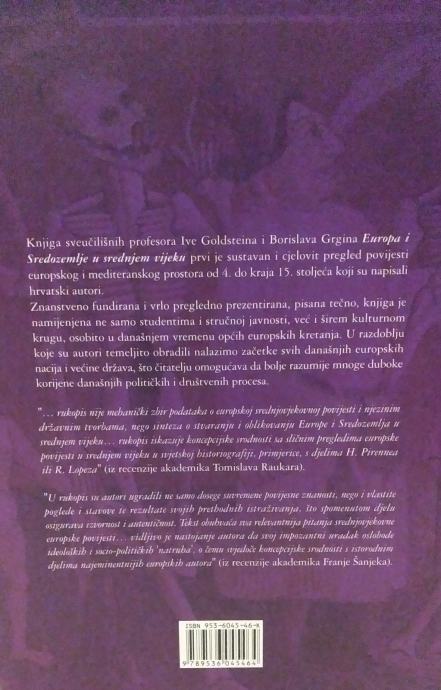 Knjiga EUROPA I SREDOZEMLJE U SREDNJEM VIJEKU, GOLDSTEIN i GRGIN