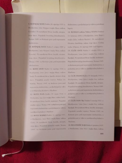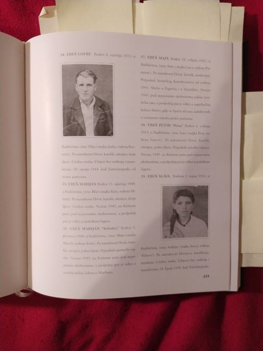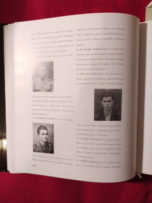 Ilustrirano slikama i grafikama. Veliki broj fotografija-portreta žrtava (uglavnom ubijenih na kraju rata), iz ratnog vremena (Drugi svjetski rat) ili (rjeđe) snimljenih u predratno vrijeme.
