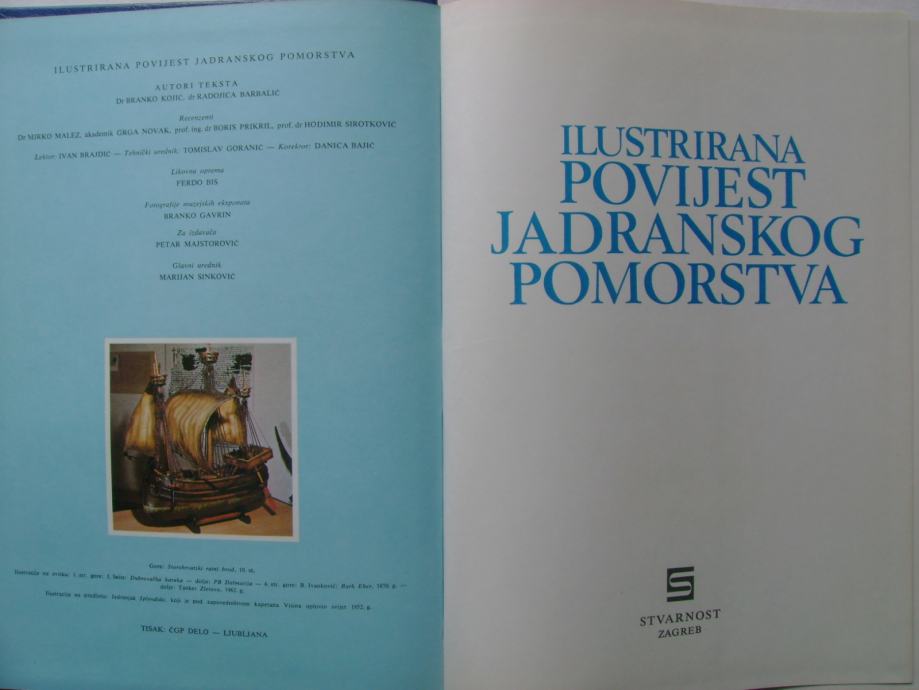 Branko Kojić/Radojica Barbalić - Ilustrirana povijest jadranskog pomorstva - izdavač Stvarnost, Zagreb 1975. godine, 21 x 29 cm, tvrdi uvez i papirnati omot, 316 stranica, bogato ilustrirano.