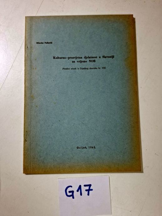 Milenko Patković - Kulturno-prosvjetna djelatnost u Slavoniji za vrijeme NOB