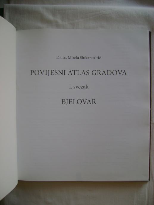 Mirela Slukan Altić - Povijesni atlas gradova; 1. svezak - Bjelovar - izdavači Državni arhiv Bjelovar i Hrvatski državni arhiv Zagreb, 2003. godine, 29 x 32 cm, tvrdi uvez, 213 stranica, bogato ilustrirano, tiskano na kvalitetnom papiru, naklada 800 primjeraka.