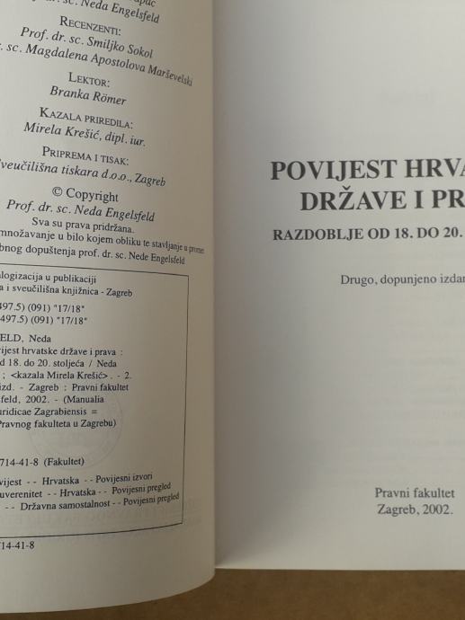 NEDA ENGELSFELD:POVIJEST HRVATSKE DRŽAVE I PRAVA OD 18. DO 20.STOLJEĆA