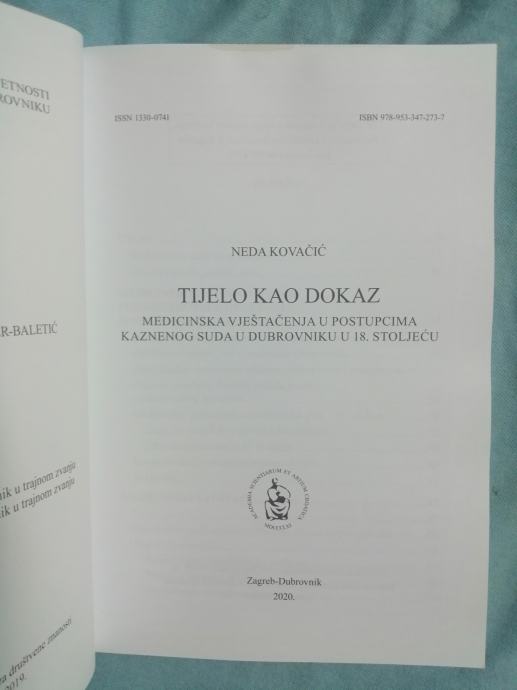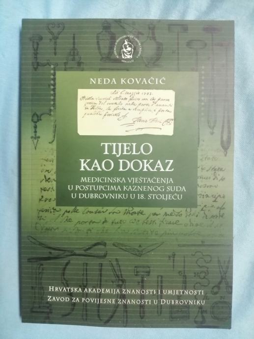 Neda Kovačević – Tijelo kao dokaz : Medicinska vještačenja u postupcima kaznanog suda u Dubrovniku u 18. stoljeću