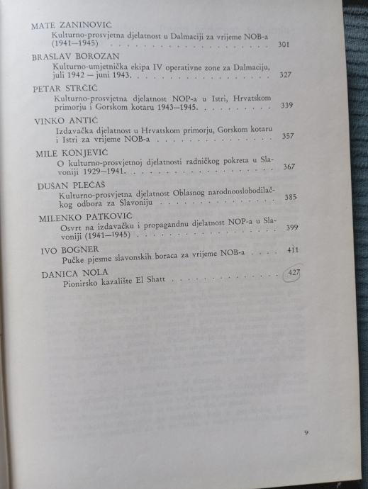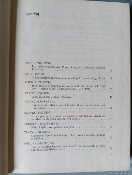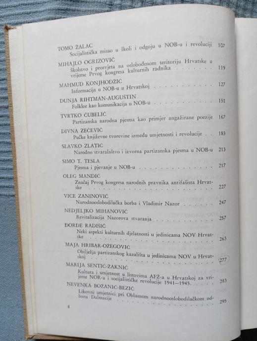 Zbornik sadrži 33 priloga sa znanstvenog skupa »Kultura i umjetnost u NOB- u i socijalističkoj revoluci i u