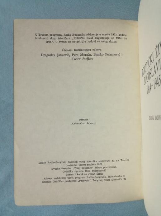 Politički život Jugoslavije 1914–1945. Zbornik radova (A6)