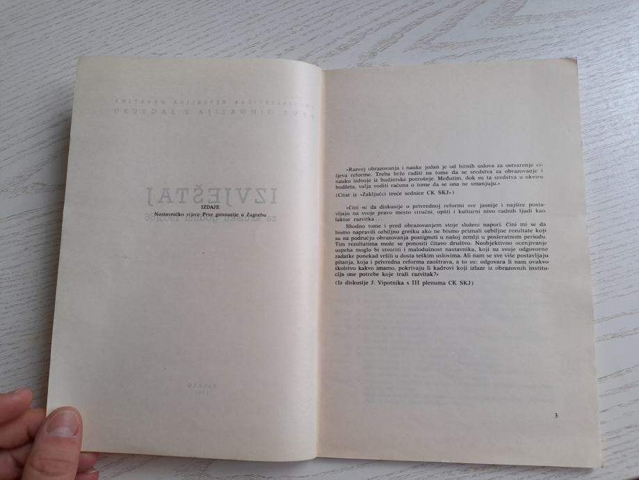 Nakladnik: Nastavničko vijeće Prve gimnazije u Zagrebu