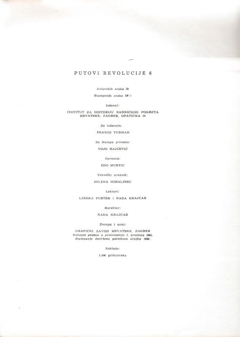 PUTOVI REVOLUCIJE 6/1966., Institut za hisoriju radničkog pokreta Hrvatske, Zagreb 1966.