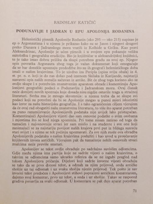 Radoslav Katičić: Podunavlje i jadran u epu Apolonija Rođanina