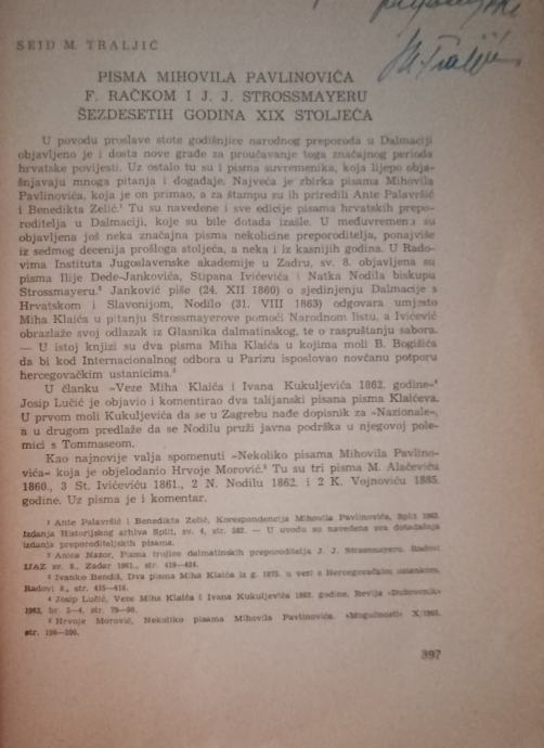 Seid M. Traljić: Pisma Mihovila Pavlinovića F. Račkom...