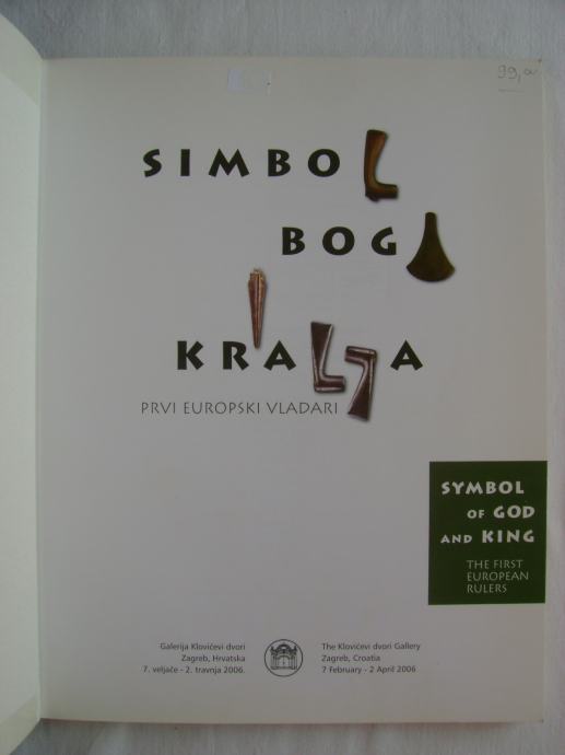 Katalog izložbe - Simbol boga i kralja; Prvi europski vladari - izdavač Galerija Klovićevi dvori, Zagreb 2006. godine, 22 x 28 cm, meki uvez, 135 stranica, tekst na hrvatskom i engleskom jeziku, bogato ilustrirano, naklada 1000 primjeraka.