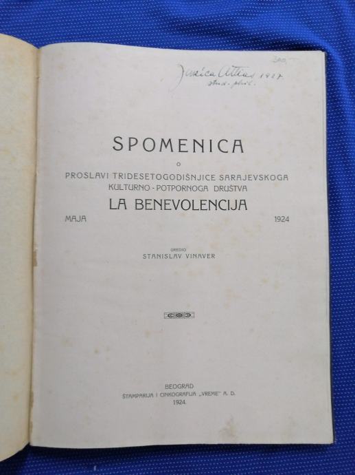 Spomenica o proslavi tridesetogodišnjice sarajevskoga kulturno-potpornoga društva La benevolencia