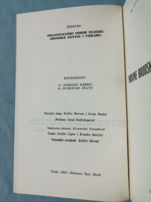 Nakladnik: Organizacijski odbor izložbe: „Brodske novine i tiskare“