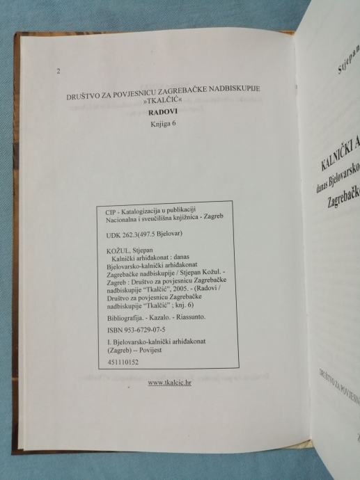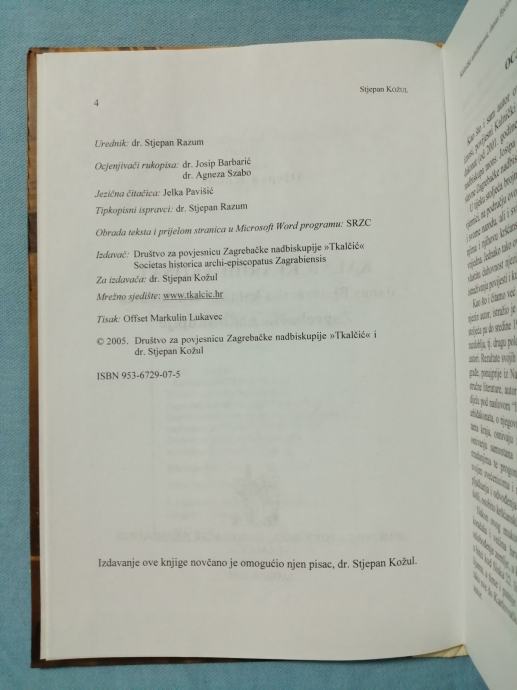 Nakladnik: Društvo za povjesnicu Zagrebačke nadbiskupije „Tkalčić“
