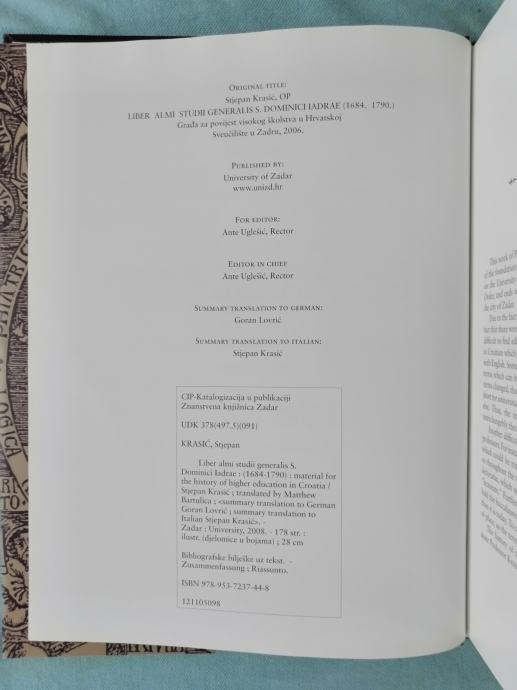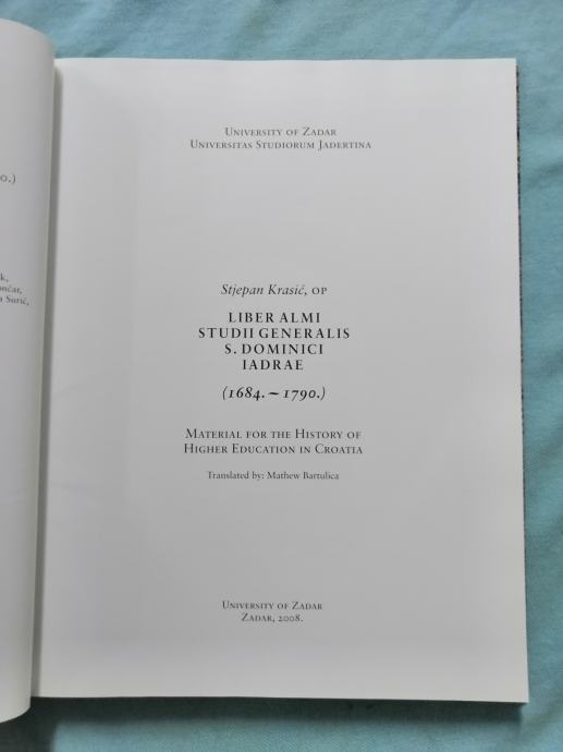 Stjepan Krasić – Liber almi studii generalis s. Dominici Iadrae (1684.-1790.) Material for History of Higher Educations in Croatia