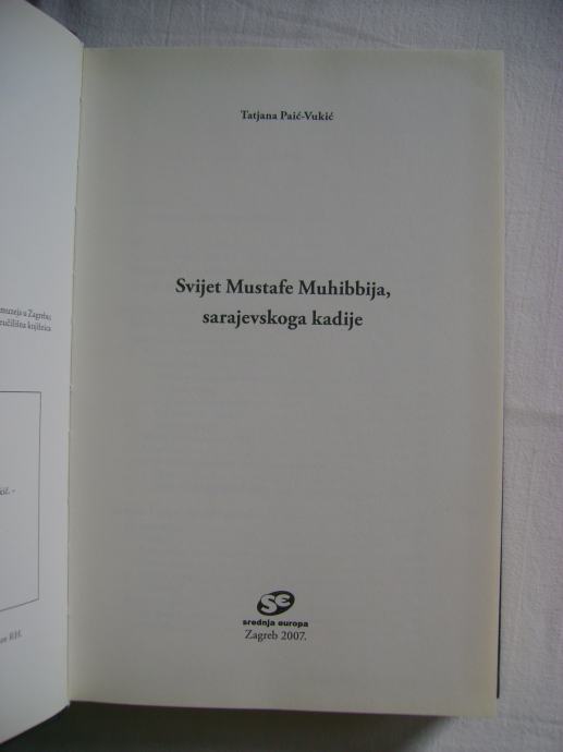 Tatjana Paić-Vukić - Svijet Mustafe Muhibbija, sarajevskog kadije - izdavač Srednja Europa, Zagreb 2007. godine, 16 x 24 cm, tvrdi uvez, 267 stranica.