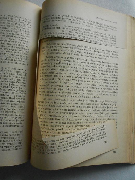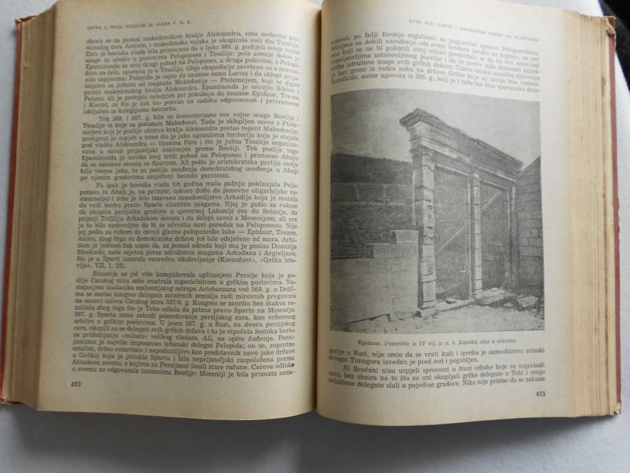 Prodajem knjigu "Stara Grčka" koja govori o povijesti civilizacije na području Mediterana. Bogato je ilustrirana crno-bijelim fotografijama koje su na par mjesta izrezane nakon posudbe knjige za studij.