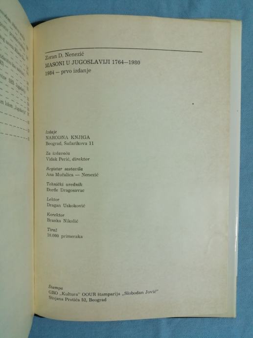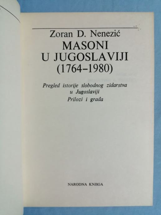 Zoran D. Nenezić – Masoni u Jugoslaviji (1764–1980) : Pregled istorije slobodnog zidarstva u Jugoslaviji – Prilozi i građa