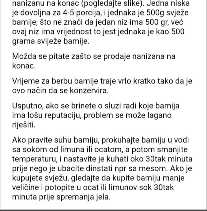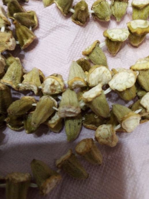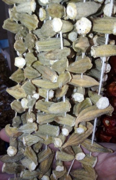 Prodajem sušenu ovogodišnju bamiju, plodovi su nizani na vjenčić dužine 2m.Cijena po vjenčiću je 10 eura.