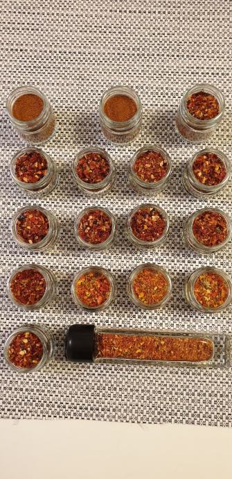Mix osušenih chili papričica iz domaćeg organskog uzgoja, krupno mljeveno. Sadrži nekoliko vrsta srednje i vrlo ljutih sorti - Jamaican hot, Cyklon, Serano, Habanero, Bhut Jolokia.