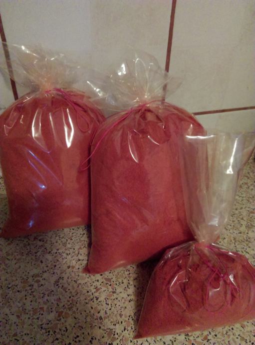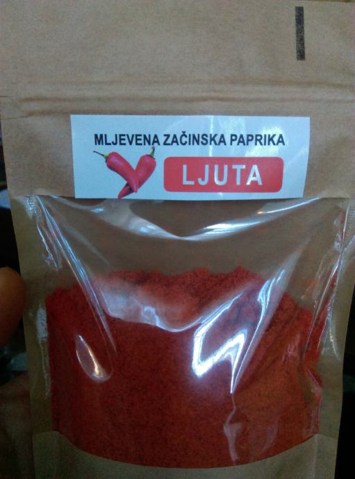 Mljevena začinska paprika vrhunske kvalitete, cijena 22e. U ponudi slatka i ljuta, tucana i dimljena.