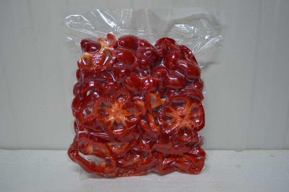Paprika crvena očišćena i rezana, spremna za korištenje.