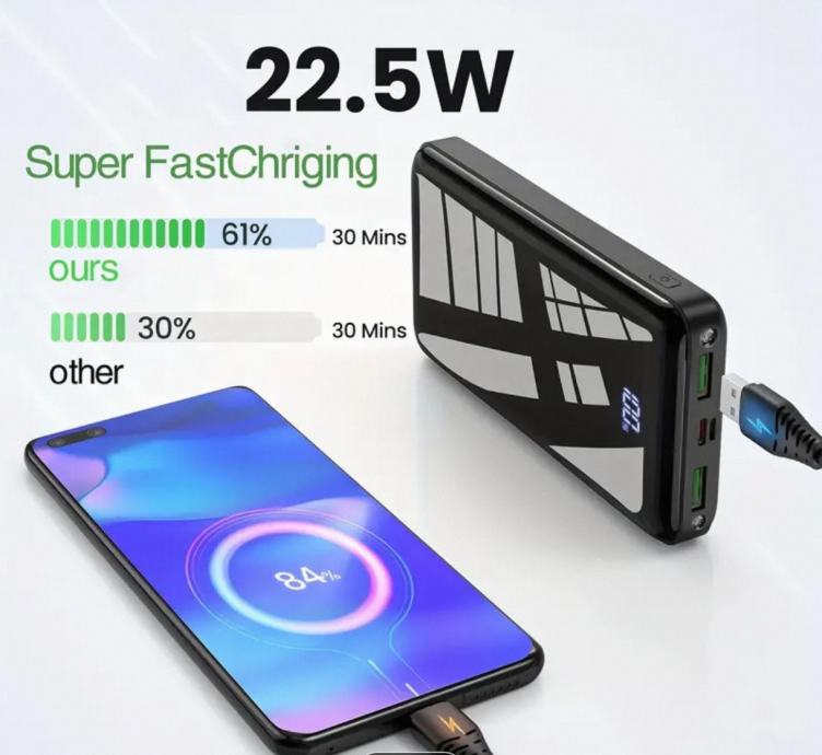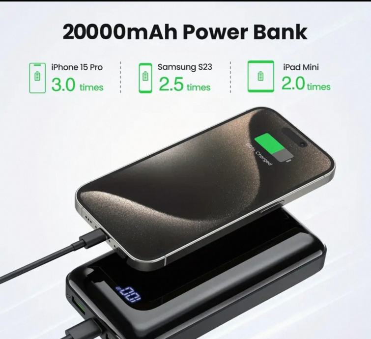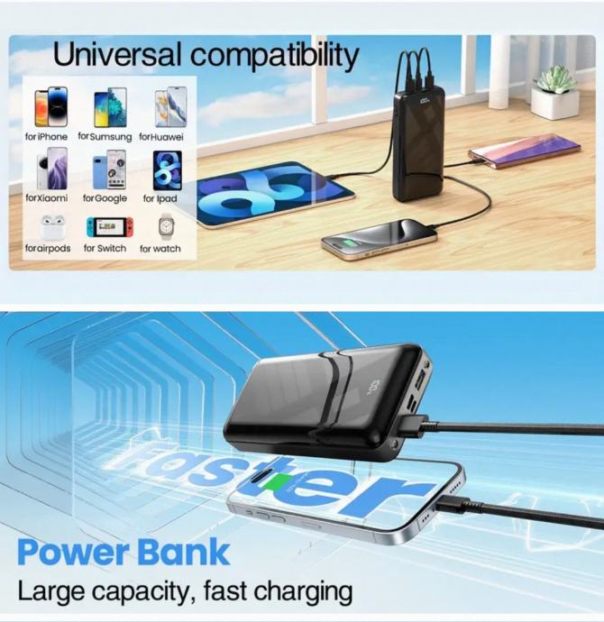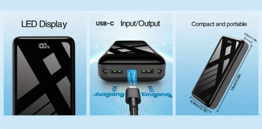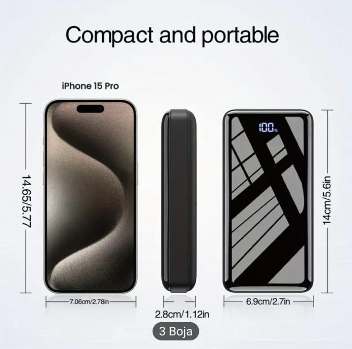 Baterija s dvostrukim USB priključkom, LED svjetlima, (dosta jako svjetlo), digitalni prikaz, pogodna za sve uređaje. Kompaktna - nešto manjih dimenzija od sličnih baterija iste snage.