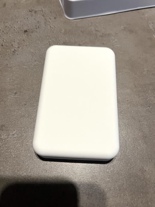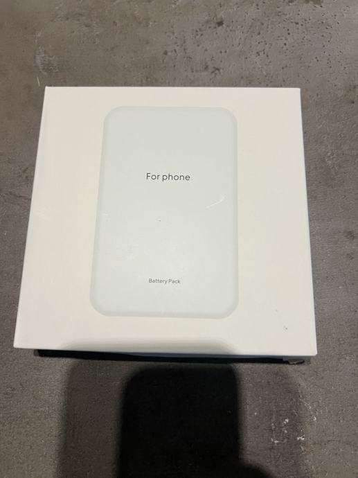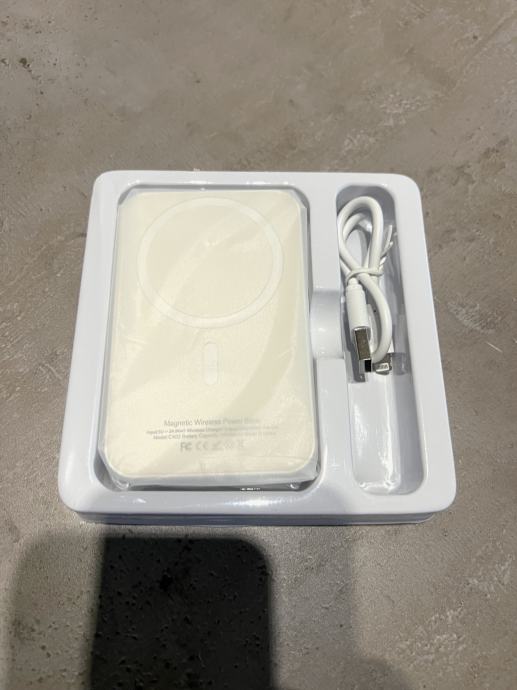 Prodaje je bijeli Magnetni Power Bank, Battery Pack for iPhone, odnosno bežični i žični punjač za iPhone i ostale mobitele koji podržavaju bežično punjenje. Ovaj model je bez Apple loga. Dolazi u kutiji s malim lightning kabelom. Kapacitet je 5000 mAh. Cijena je fiksna, zamjene ne dolaze u obzir.