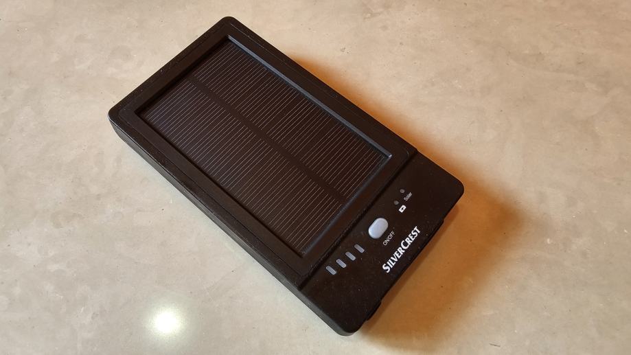 Powerbank sa solarnim panelom. Rijetko korišten, kapaciteta 5000 mAh.