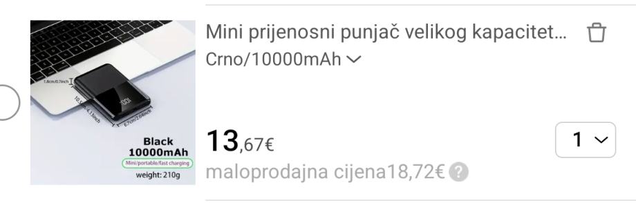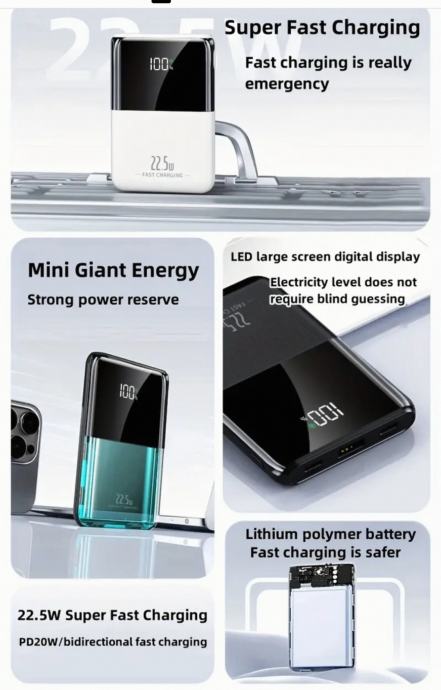 brzo punjenje 22.5W, digitalni prikaz stanja, mali kabl uz nju...