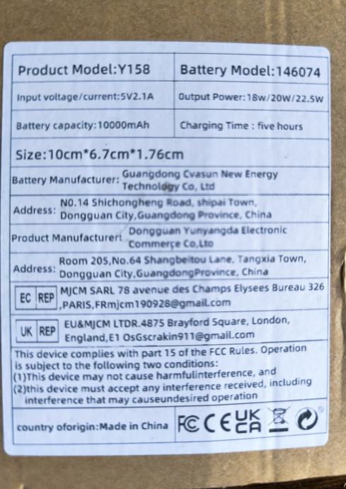 MALIH dimenzija (vidljive na deklaraciji, debljina samo 1.8cm) - za nadopunu mobitela i drugih uređaja kada nema el. priključka u blizini - LAGANA za nošenje!