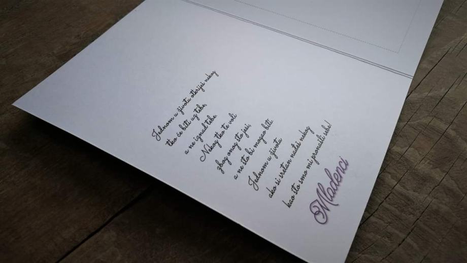 Zahvalnica je izrađena na preklop, sa tiskom na vanjskoj i unutarnjoj strani, u koju se lijepi slika standardne dimenzije 10x15cm.