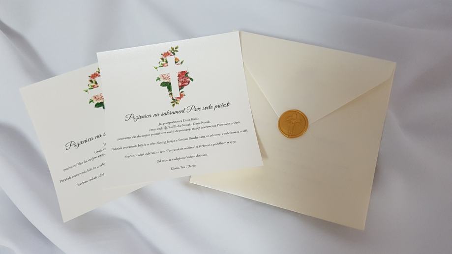 Pozivnice za krštenje ili prvu pričest sa pečatom od voska u obliku križa.