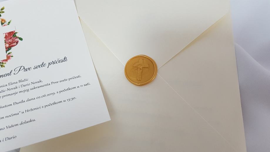 Pozivnice za krštenje ili prvu pričest sa pečatom od voska