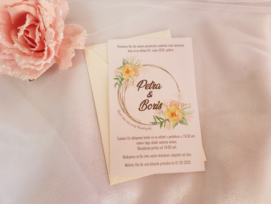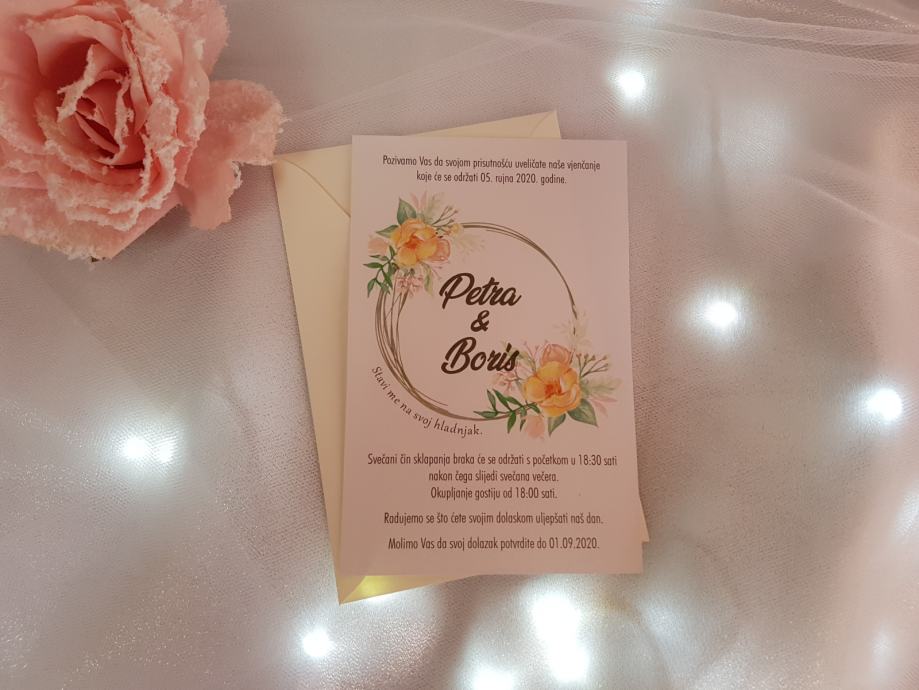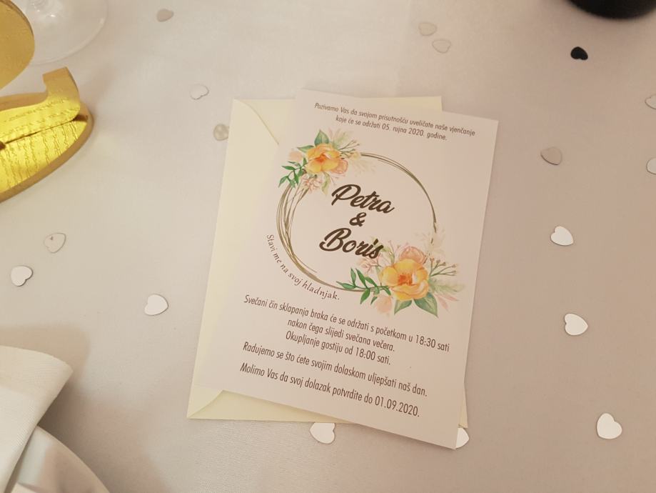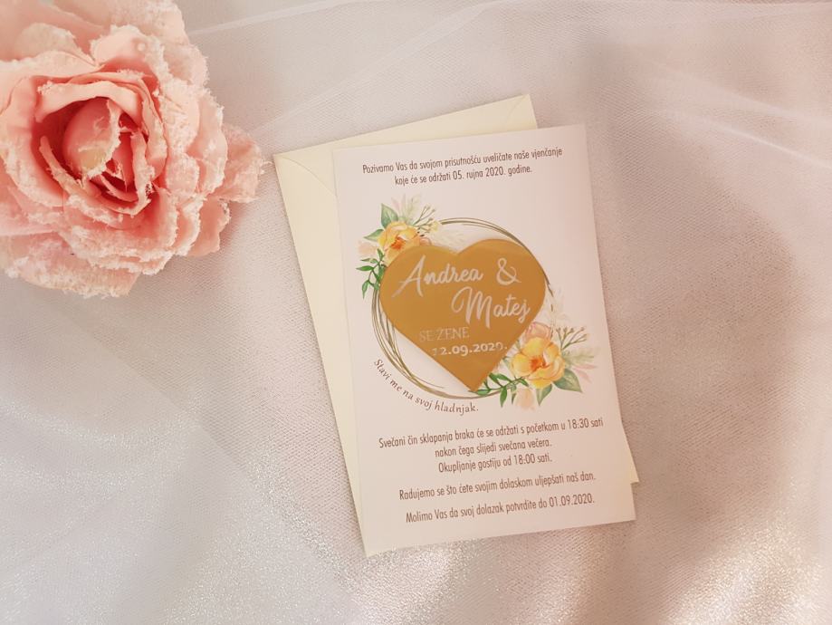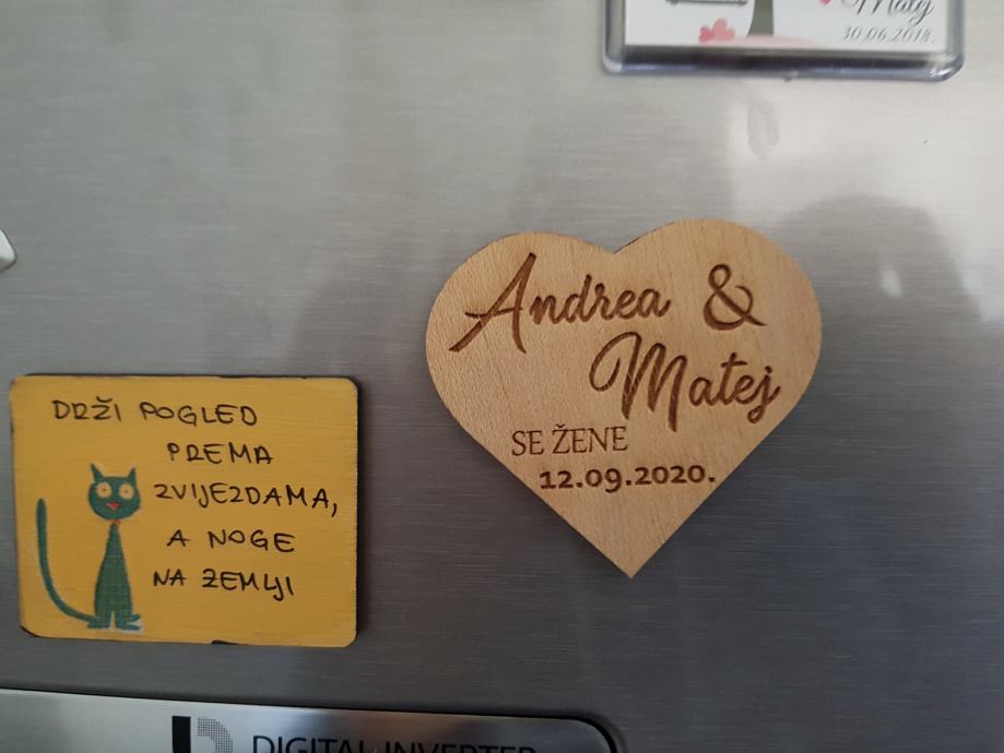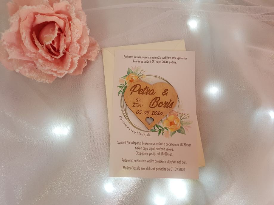 Naše najnovije pozivnice dolaze sa magnetom koje svatovi mogu skinuti i staviti na svoj frižider kako ne bi zaboravili datum vaše svadbe.