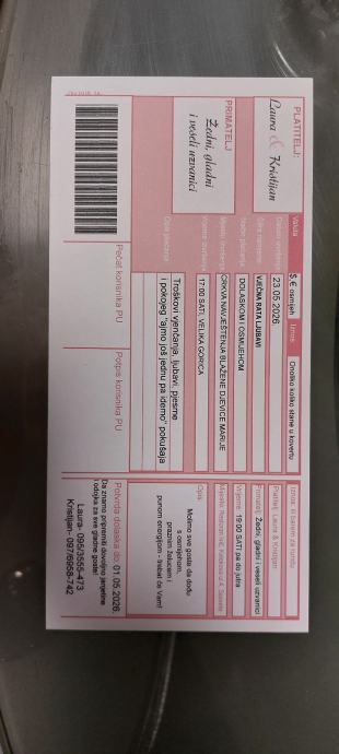 Pozivnica za vjenčanje, cijena po komadu 0.45 eura