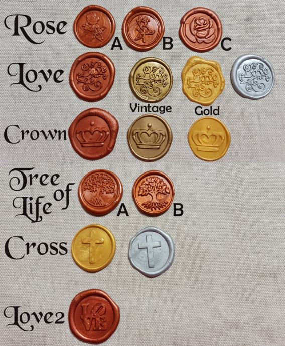 Pečat može biti u nekoliko boja: crvena, zlatna, brass zlatna i srebrna.