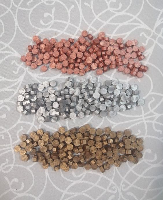 Vosak za pečate dostupan je u zlatnoj, rozoj i srebrnoj boji.