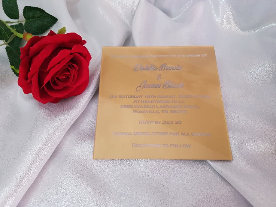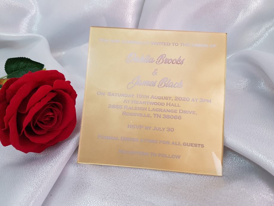 Zlatna pozivnice za vjenčanje od pleksiglasa, dizajn prema želji