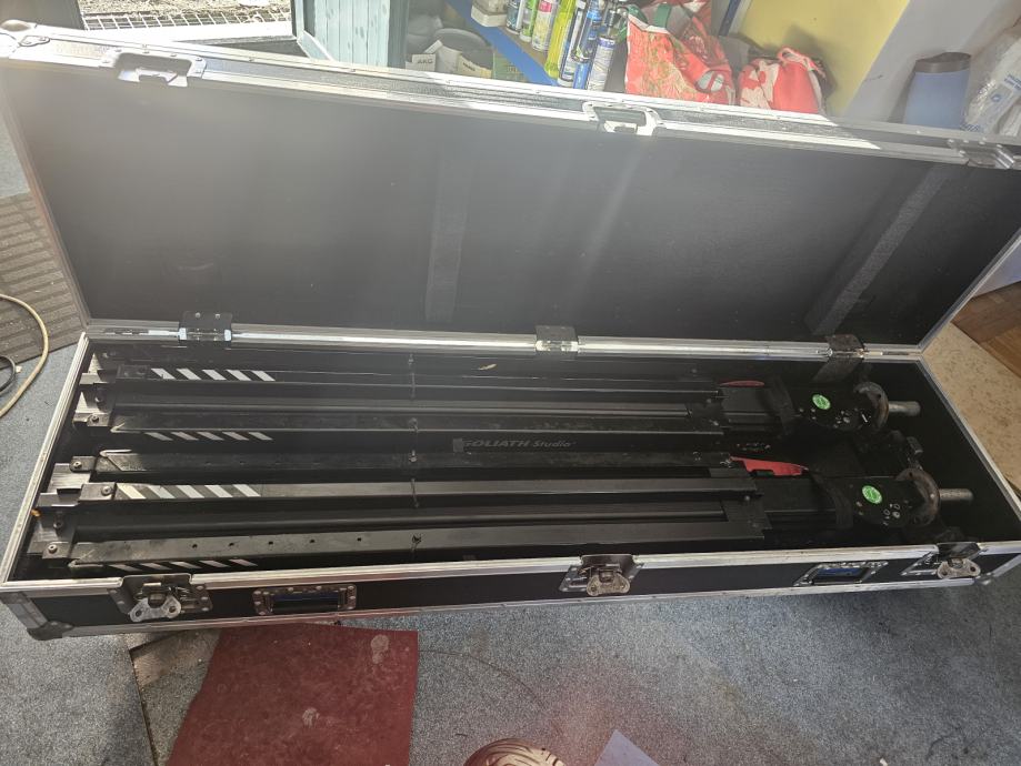 Prodajem komplet od dva GOLIATH PRO 4500 winch stalka sa 4 noge LIFT. PRO VERZIJA s automatskim backup sustavom TÜV TESTIRAN PREMA BGV C1! Sustav zupčaste letve i zupčanika bez sajli! Sigurna stabilnost i revolucionarni design bez vanjskih osiguraca sve je na stalku skupa sa waser vagom za fino centriranje, dva kotača za laksi transport i manipulaciju.