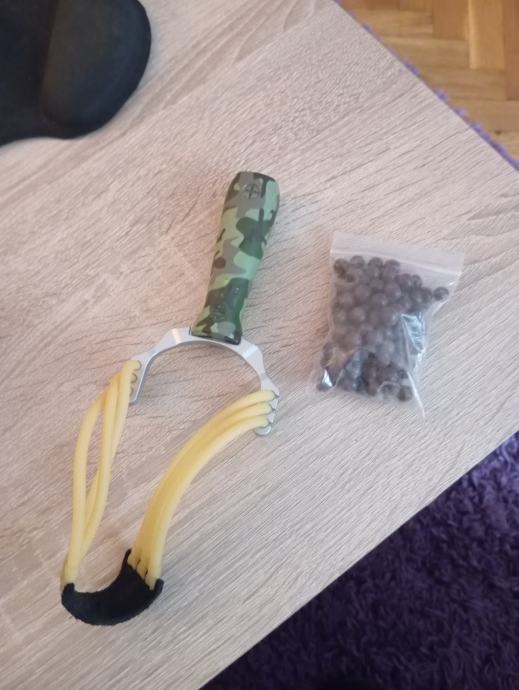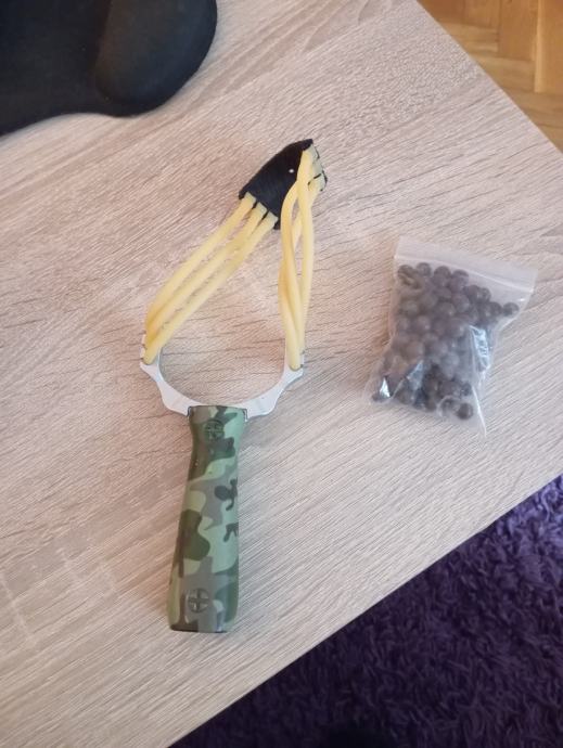 praćka i 100 komada glinenih kuglica