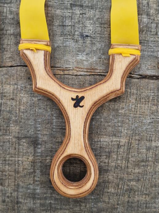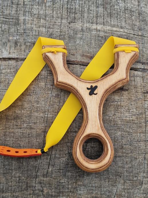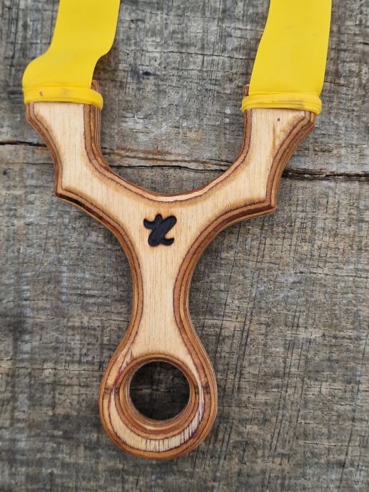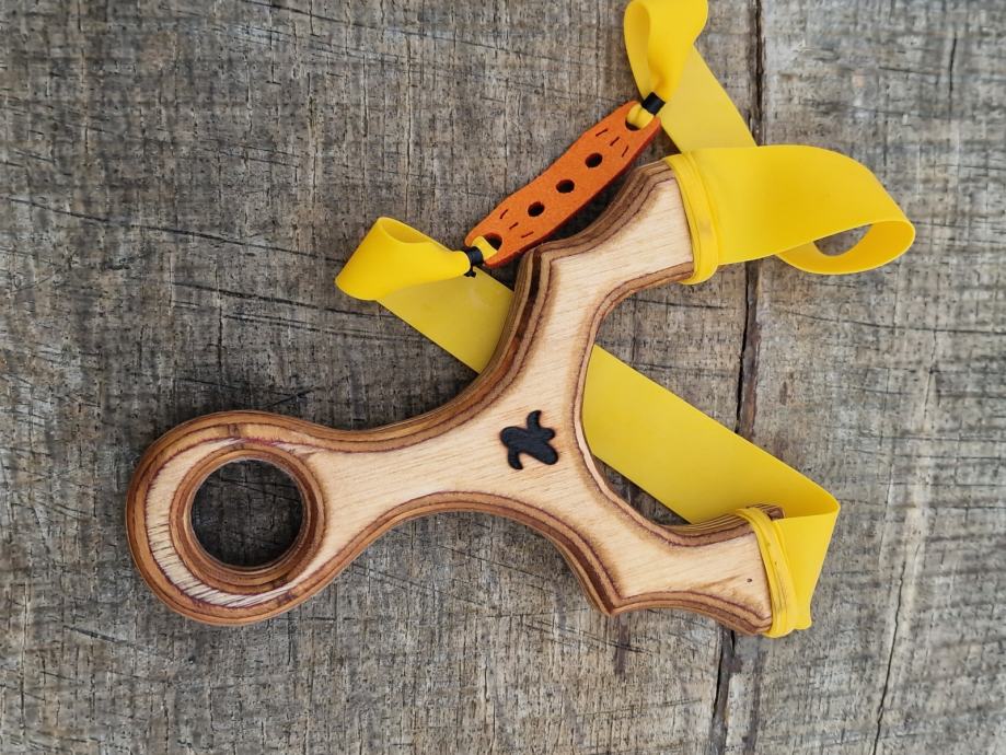 Praćka Shot 30 materijal prešana brezovina 16mm izuzetno čvrsta, zaštićena lanenim uljem, sa gumom GZK 0,62mm i kožom za kuglice 8-9mm.