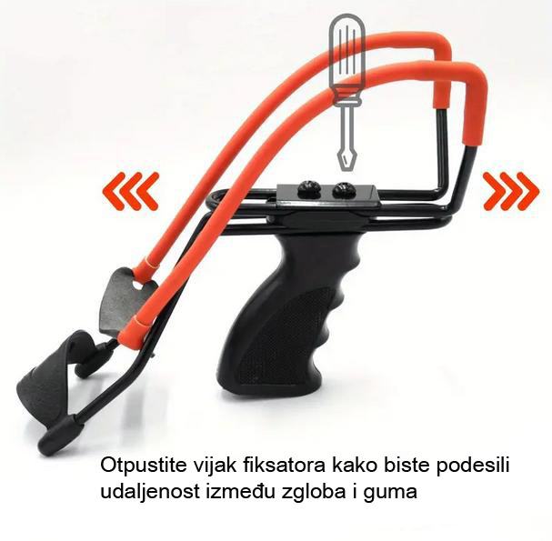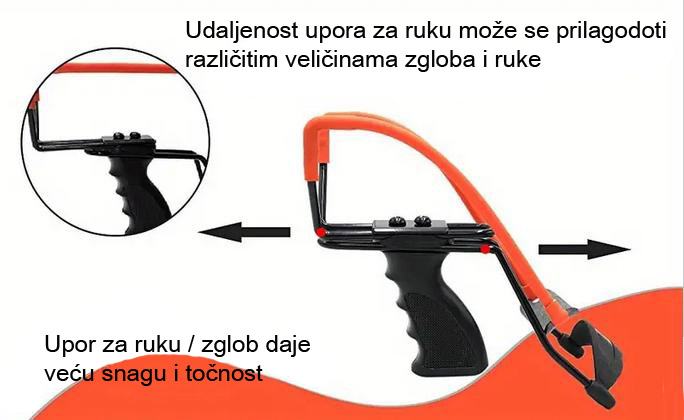 Velika lovačka pračka sa podesivim uporom za ruku, precizna do 35 m, velikog dometa.