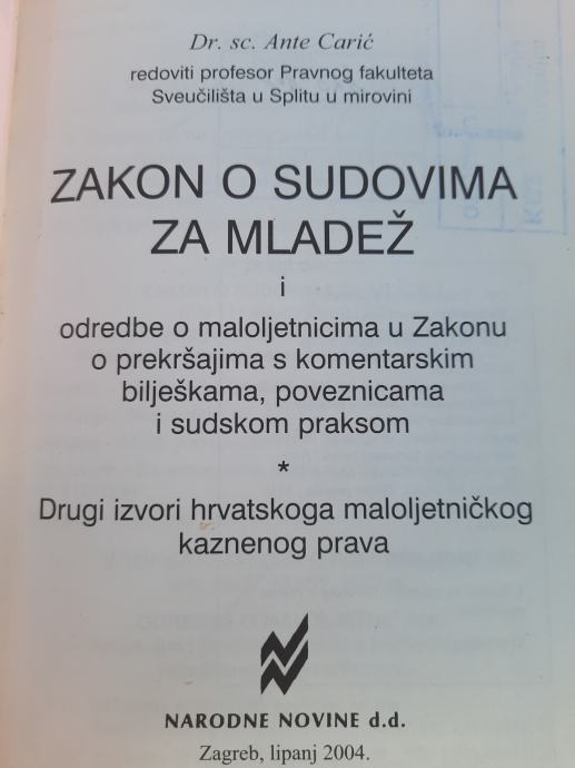 Ante Carić ZAKON O SUDOVIMA ZA MLADEŽ