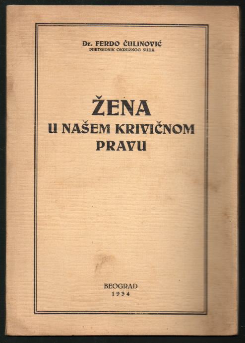Čulinović, Ferdo - Žena u našem krivičnom pravu