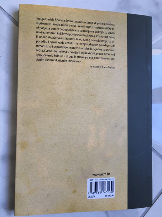U svom znanstvenom radu Šporer i inače istražuje povijest autorstva, knjige i tiskarstva uopće s posebnim naglaskom na mijene koje su dovele do tadašnjeg shvaćanja i položaja književnosti i književnih autora. Utoliko je i ova njegova knjiga s jedne strane akribična i čvrsto utemeljena u povijesti književnosti, a s druge je pak strane pisana jednostavnim, preciznim i komunikativnim idiomom.