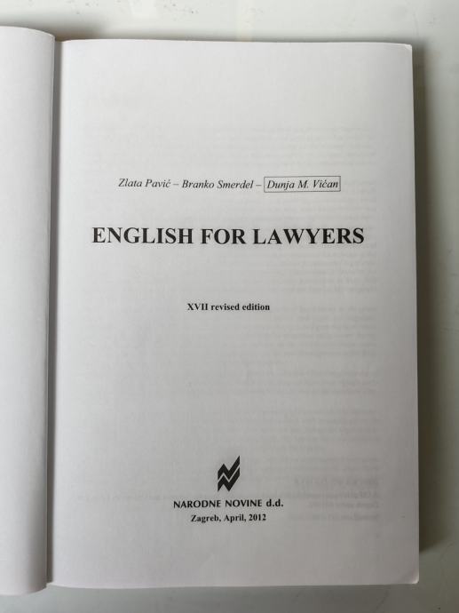 English for lawyers - Pavić, Smerdel, Vićan XVII izdanje 2012 NN