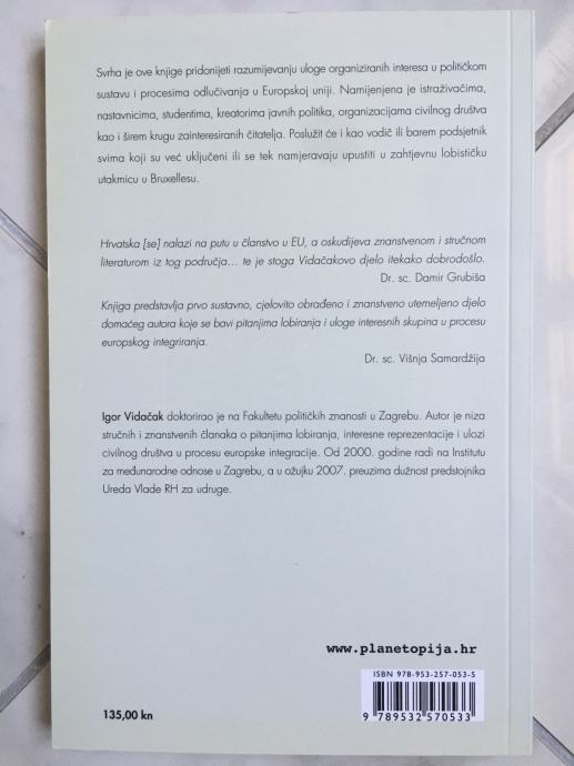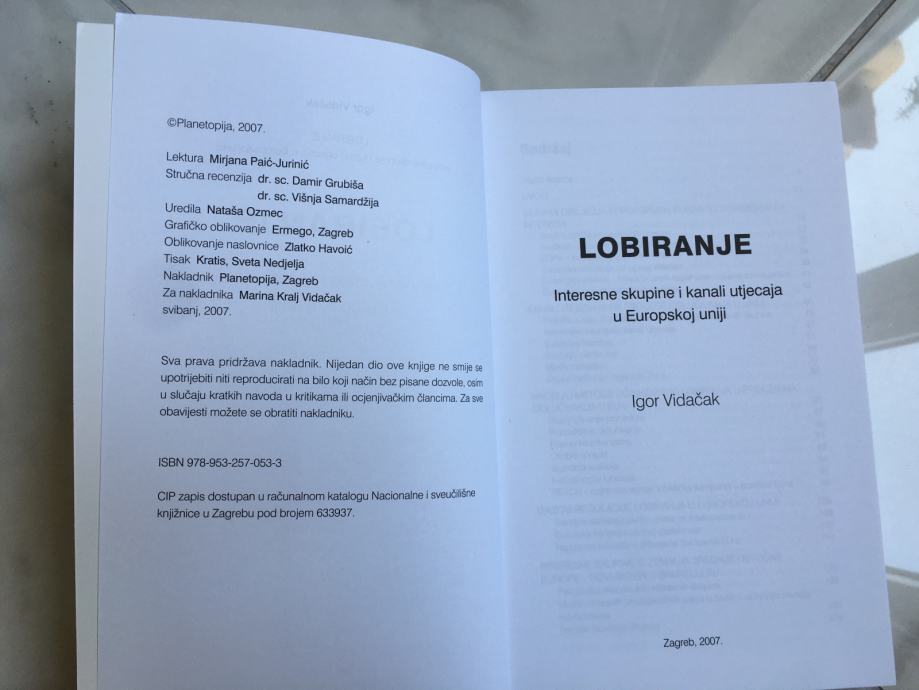 Igor Vidačak, LOBIRANJE - Interesne skupine i kanali utjecaja u EU